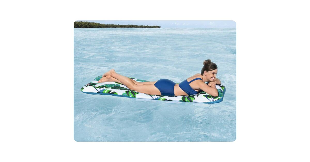 Този надуваем дюшек за плуване Bestway е идеалният избор за вашата лятна почивка! Насладете се на слънцето и прохладната вода удобно, върху дюшек, украсен с тропически листа. Меката, контурна облегалка осигурява допълнителен комфорт, а вградената възглавница се грижи за правилната опора на врата и главата.