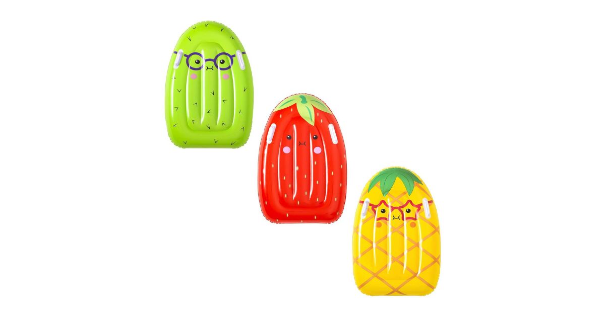 Този надуваем плавателен килим Bestway е перфектният избор за лятно забавление! Неговите уникални дизайни с плодове (киви, ананас, ягода) ще внесат веселие в басейна или на плажа. С две удобни дръжки се управлява лесно, а здравият PVC материал гарантира дълготрайност.