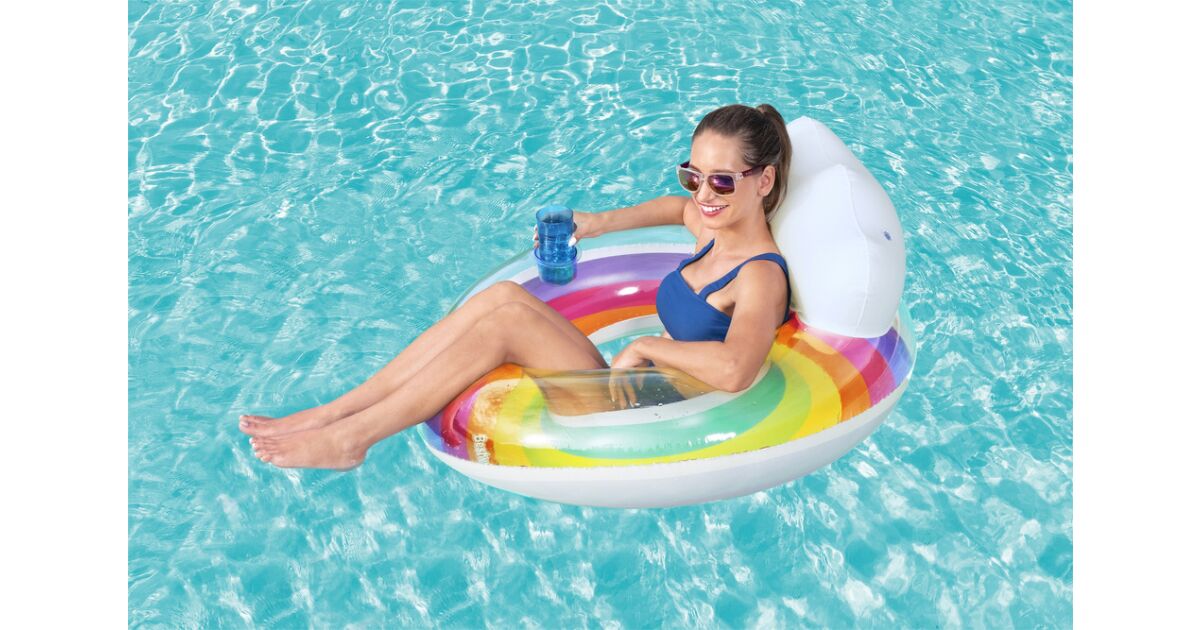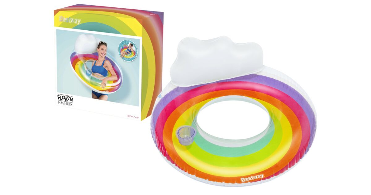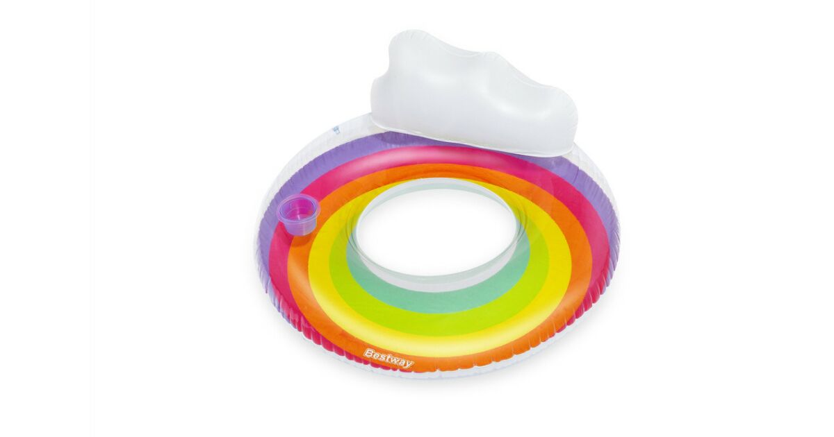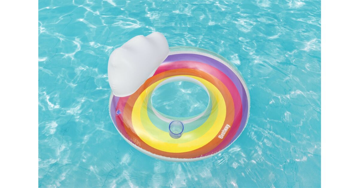 Насладете се на лятото с надуваемия пояс за плуване Rainbow Bestway! Този цветен пояс за плуване с диаметър 107 см е идеален за басейна или плажа. А с вградения държач за напитки любимата ви напитка винаги ще ви е под ръка. 🍹