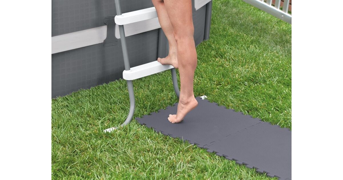 Този комплект от 8 части подложки за басейн Intex е идеалното решение за защита на вашия градински басейн и осигуряване на удобен вход. Подложката, изработена от гъбест материал, предпазва дъното на вашия басейн от земята, като по този начин удължава живота му. В същото време осигурява мека и удобна повърхност за влизане, което прави влизането във водата много по-приятно. Потребителите също потвърждават нейната мекота и приятна повърхност.