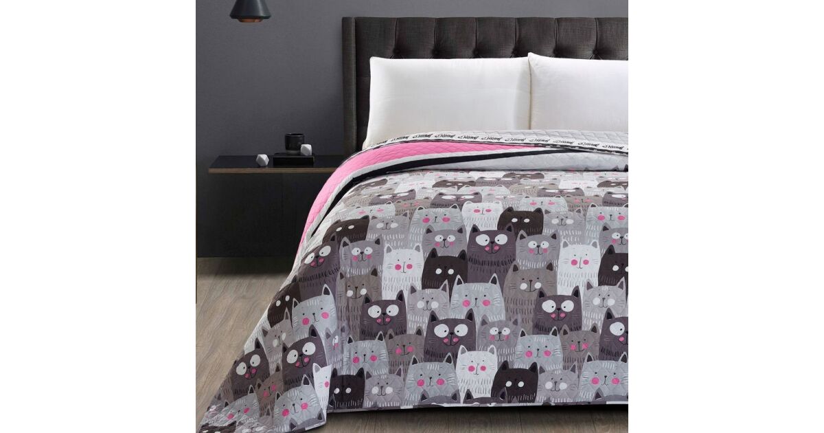 Покривка за легло CATS INVASION сив принтиран микрофибър 170x210 DecoKing