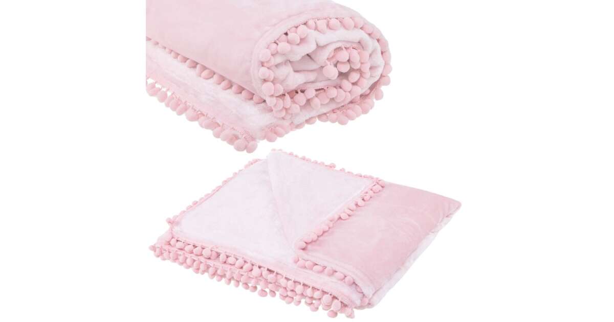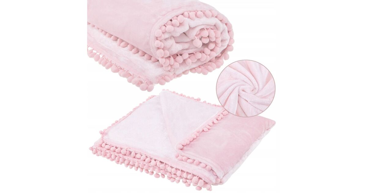 Сгушете се в мекотата с това прекрасно розово плюшено одеяло с помпони! Перфектният избор за хладните есенни и зимни вечери, за да се насладите на приятна топлина и комфорт. Изработено от висококачествен полиестер, одеялото не се нуждае от гладене и запазва пухкавостта и цвета си дълго време.