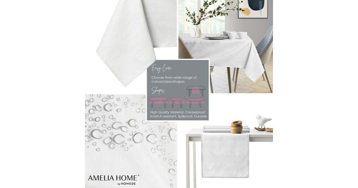 Превърнете трапезарията си в празнично място с покривката за маса AmeliaHome Vesta! Тази красива, бяла покривка с релефен дизайн придава модерна елегантност на вашия дом, като същевременно улеснява ежедневието ви благодарение на своите практични свойства.