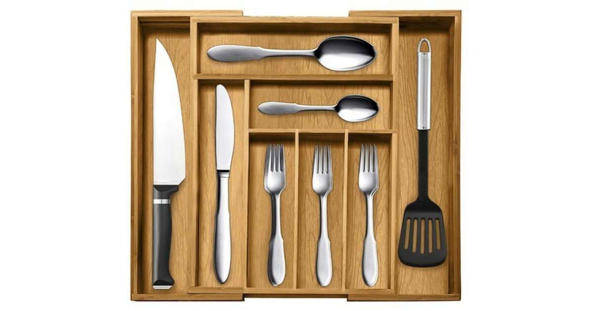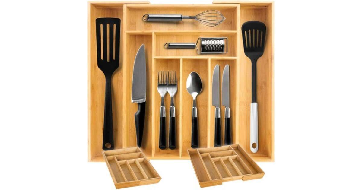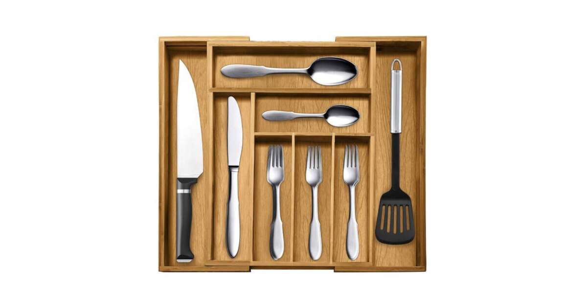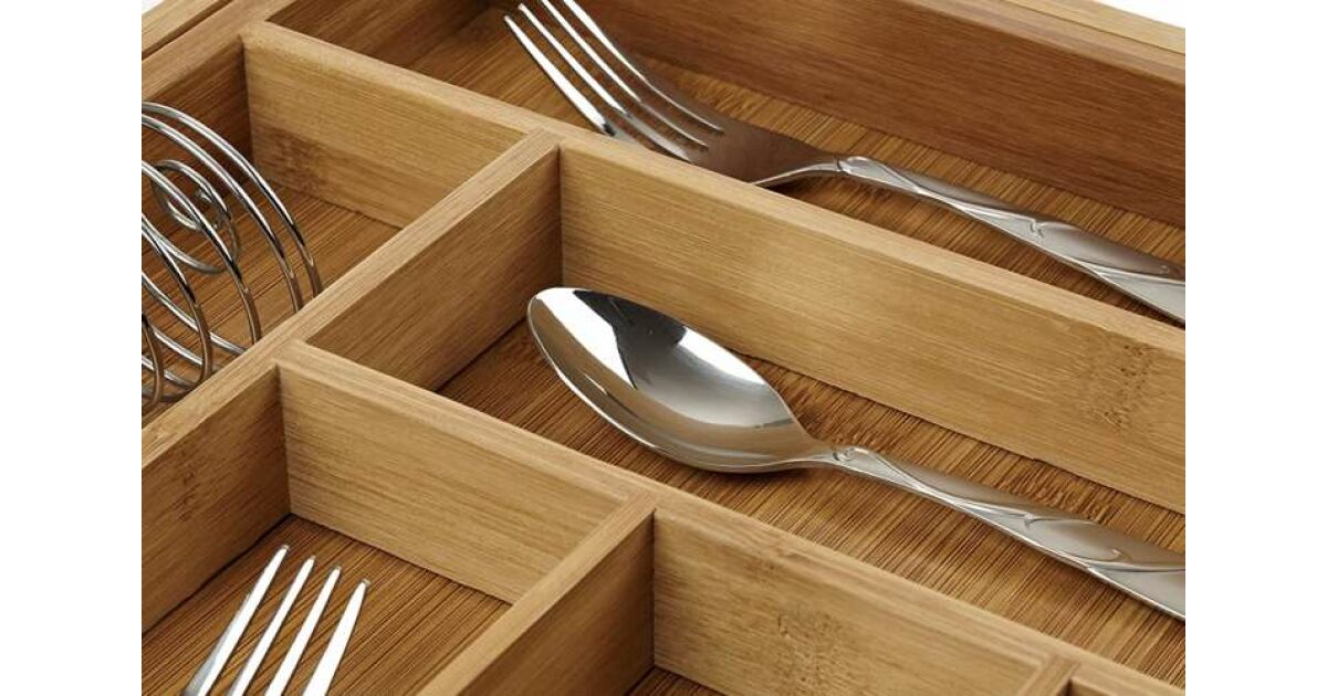 Органайзер за прибори за чекмедже от бамбук: Подредена кухня, елегантен стил ✨