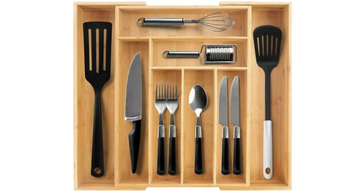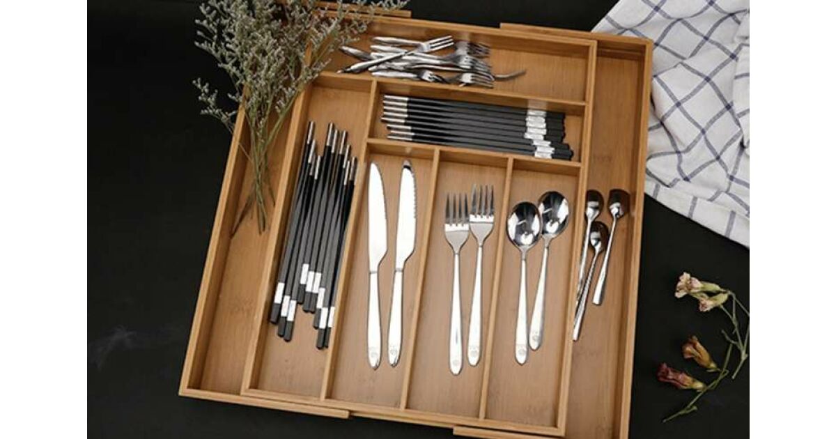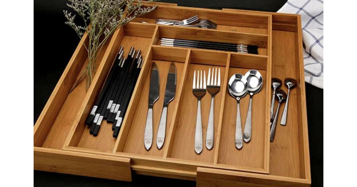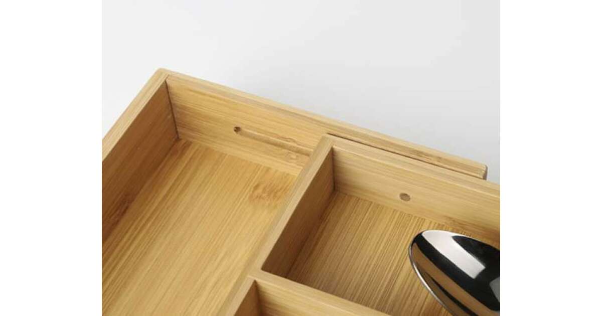 Бамбуков органайзер за кухненски чекмеджета, държач за прибори за хранене с регулируема ширина