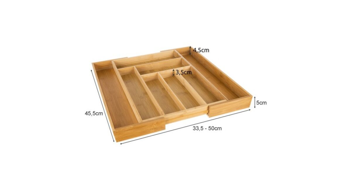 Органайзерът за прибори от бамбук е не само практичен, но и стилно допълнение към вашата кухня. Естественият цвят на бамбука се вписва във всеки кухненски стил. Лесното почистване и издръжливият материал са дългосрочна инвестиция. Според отзивите на клиентите, продуктът е супер и полезен, помага за организирането на кухнята и елегантния външен вид.