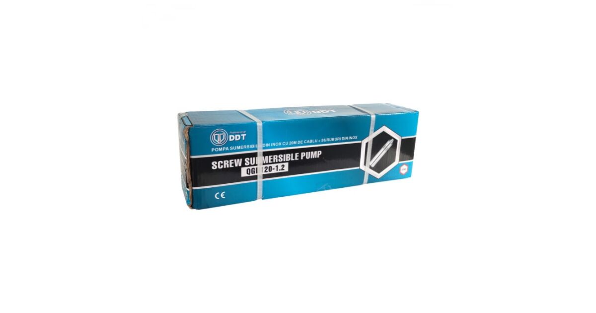 Потопяема помпа, DDT, QGD120, изцяло от неръждаема стомана, винтове от неръждаема стомана, защитен екран, 20 м кабел, 120 м, 3 м³/ч + Автоматичен... описание на...