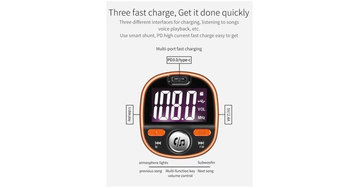 Bluetooth FM трансмитер с бързо зареждане: Слушайте музика и зареждайте телефона си в колата 🎶🚗
