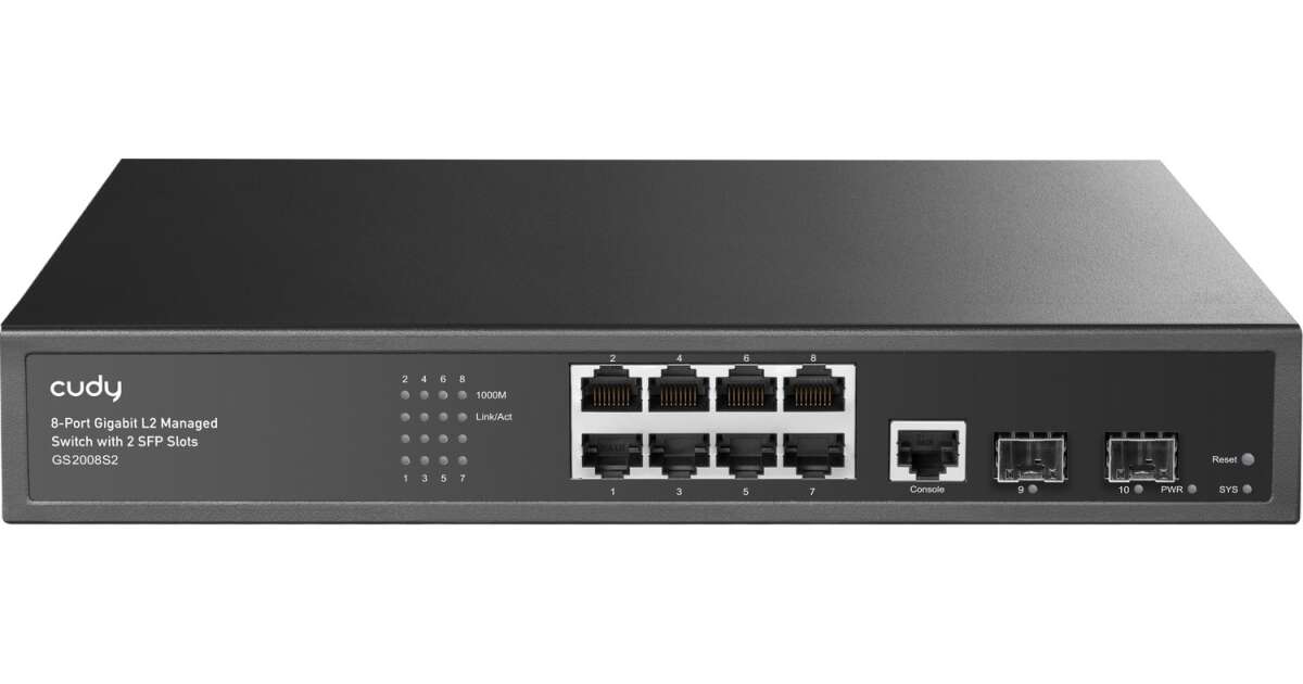 Cudy GS2008S2 мрежов комутатор Управляем L2 Gigabit Ethernet (10/100/1000) 1U Черен описание на...