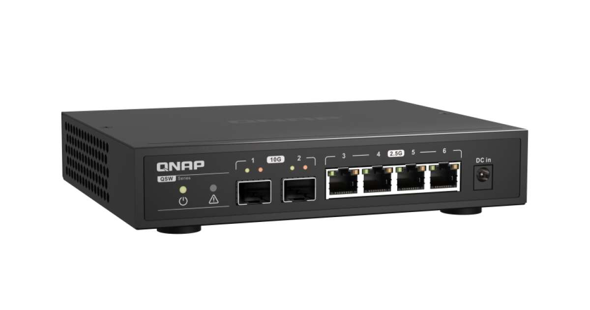 Този QNAP QSW-2104-2S switch е перфектен избор за всички, които търсят бърза и надеждна мрежова връзка за домашна или офис употреба. Разполага с два 10GbE SFP+ и четири 2.5GbE RJ45 порта, така че лесно да свържете вашите устройства с различни изисквания за честотна лента.
