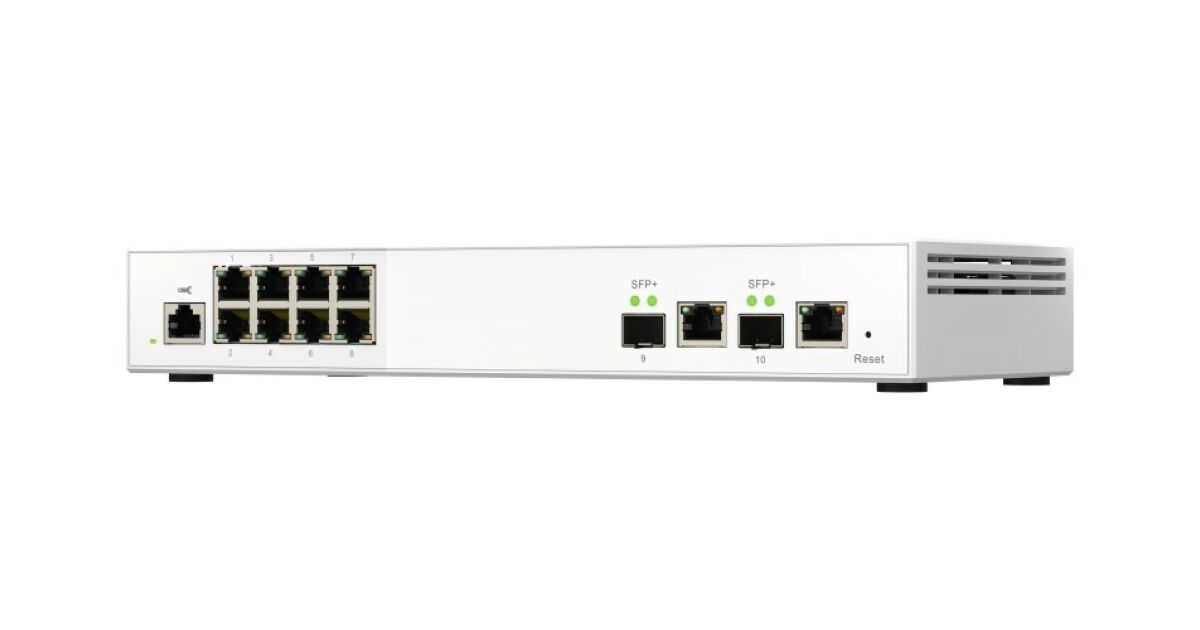 Този QNAP QSW-M2108-2C Layer 2 уеб-базиран switch е перфектен избор за малки и средни предприятия, които искат по-бърза и ефективна мрежа. Разполага с два 10GbE SFP+/RJ45 комбинирани порта и осем 2.5GbE порта, което ви дава гъвкавост при разширяване на мрежата.