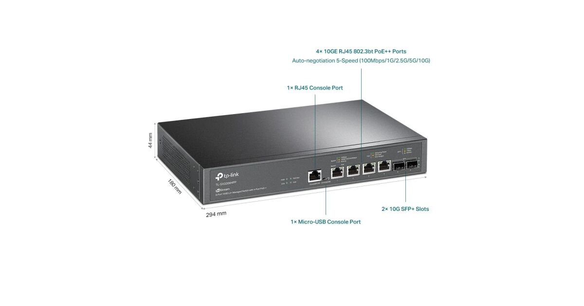 Суич TP-Link JetStream 6-порта 10GE L2+, 4 PoE++ TL-SX3206HPP, Интерфейс: 4× 100