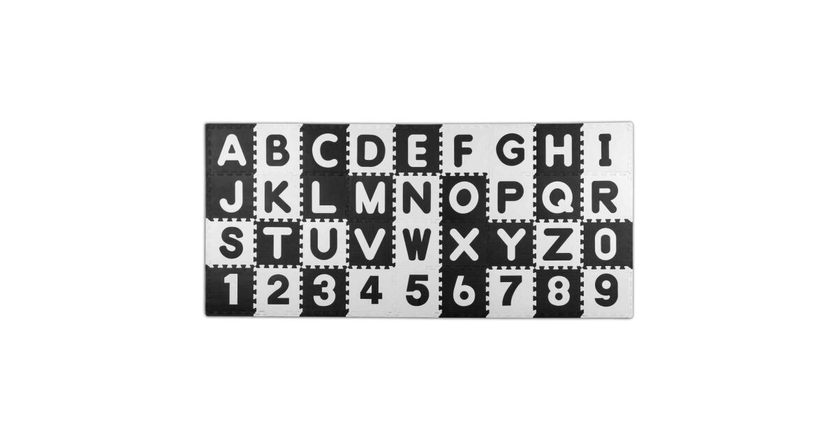 Буквите и цифрите на килимчето помагат на малките да разпознават букви и цифри, като игриво развиват уменията си за учене. Родителите са щастливи да открият, че децата се забавляват с килимчето, дори и без играчки. Контрастната черно-бяла цветова схема е особено добра за малки бебета.