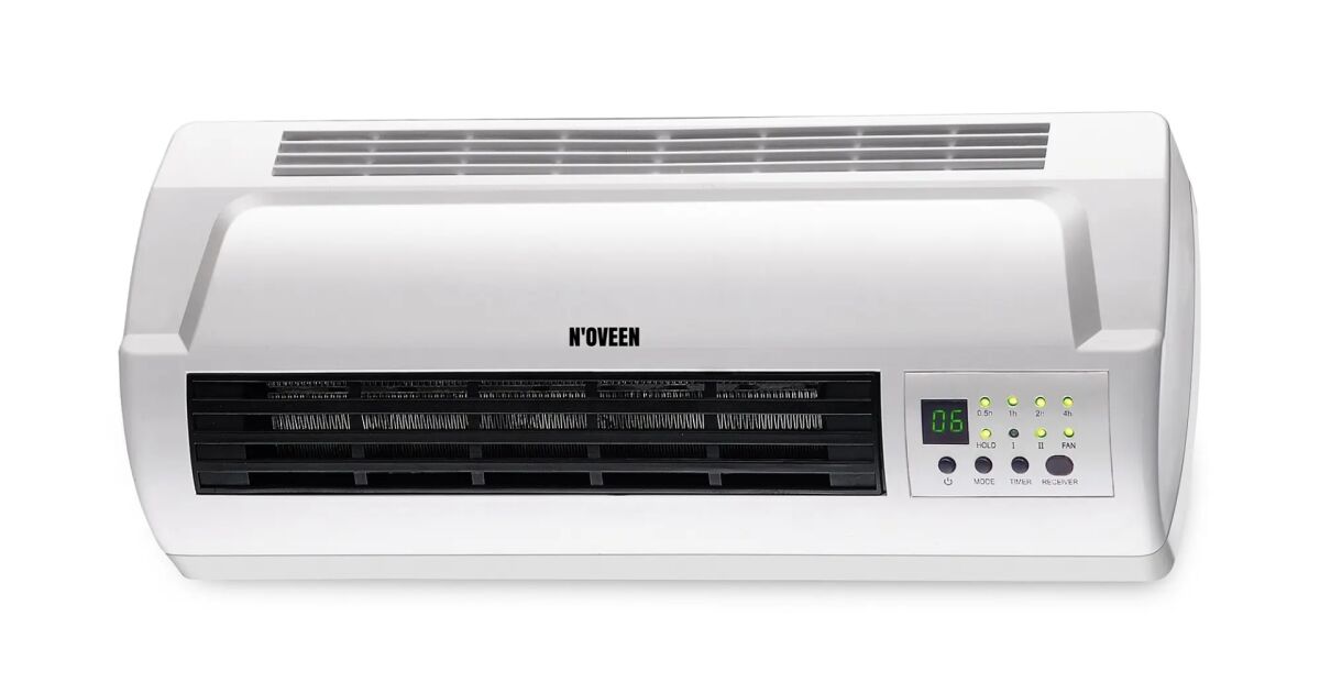 Стенен вентилатор 2000W Noveen, LED дисплей и термостат, Нагревателен елемент PTC, HC2000, Бял (HC2000)