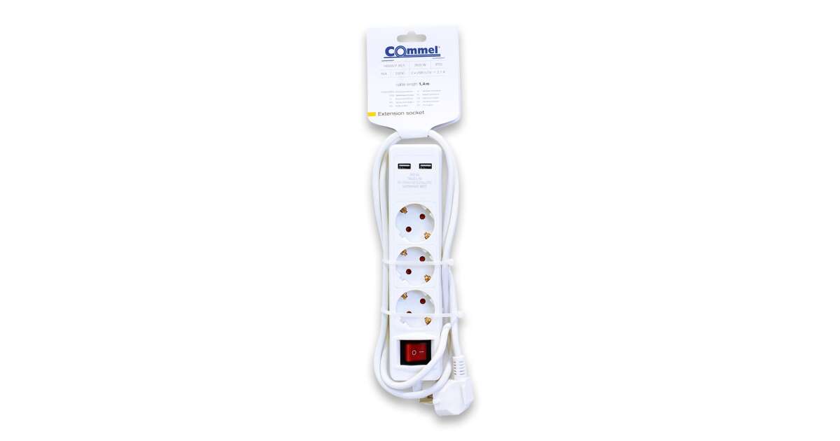 Този разклонител Commel е идеалното решение за домашна и офис употреба, ако искате да свържете и зареждате няколко устройства едновременно. Освен 3 контакта, той има и 2 USB порта, така че можете лесно да зареждате мобилния си телефон, таблета и други устройства.