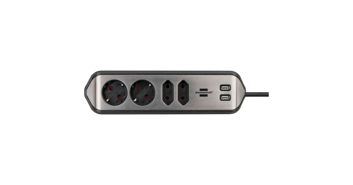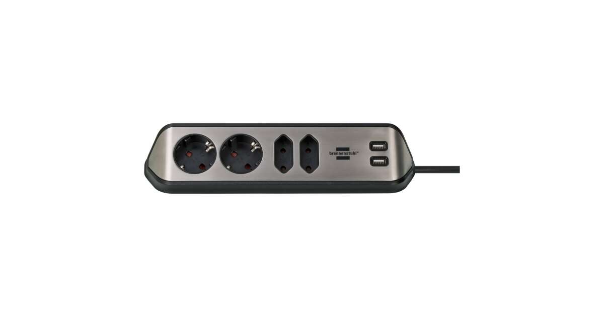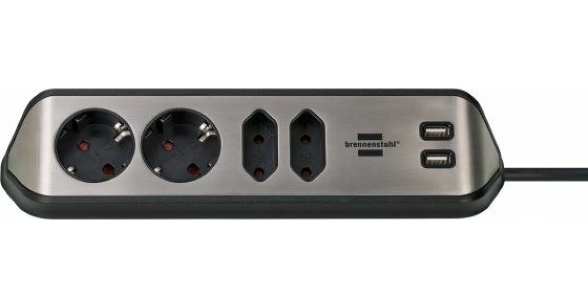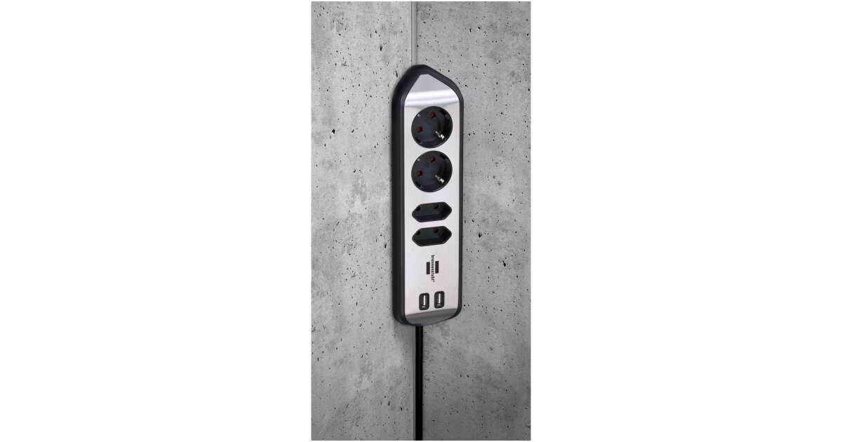 Brennenstuhl Estilo 4-гнездов разклонител с USB зарядно 2м - Сребрист описание на...