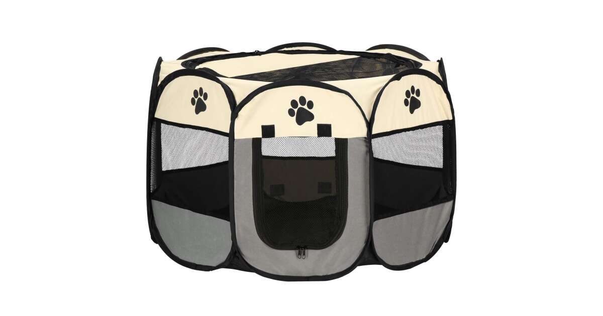 Кошара за домашни любимци Springos, Текстил, Сгъваема, Подвижен покрив, 73x73x43 см, Черен/Бежов