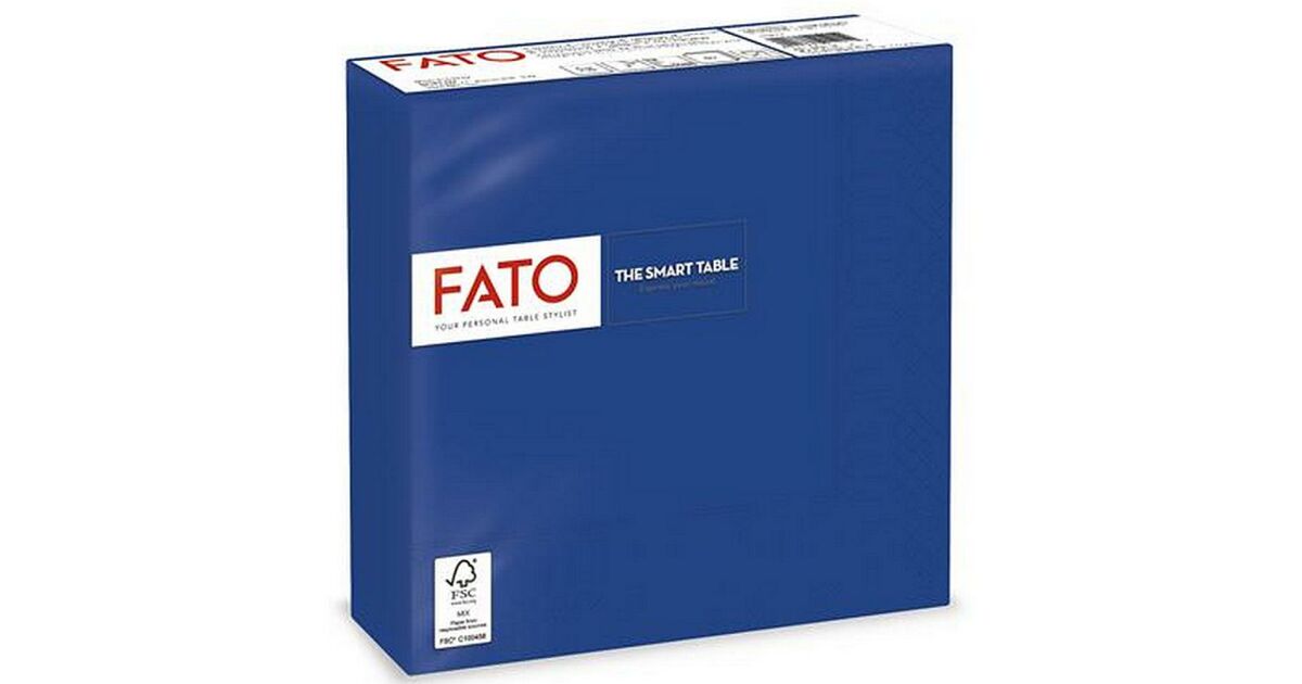 Тези двуслойни салфетки FATO са перфектният избор за всеки повод. Тъмносиният цвят придава елегантен вид на масата, а размерът от 33x33 см осигурява удобна употреба. Опаковката съдържа 50 салфетки, което е достатъчно за обслужване на по-голяма компания.
