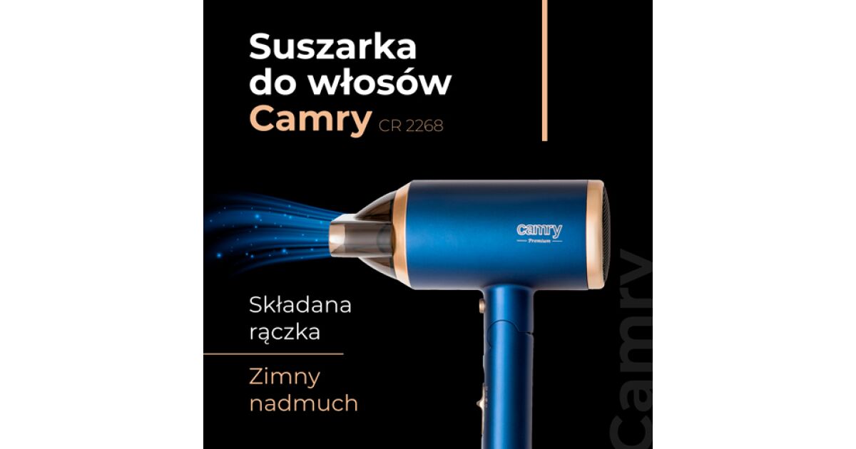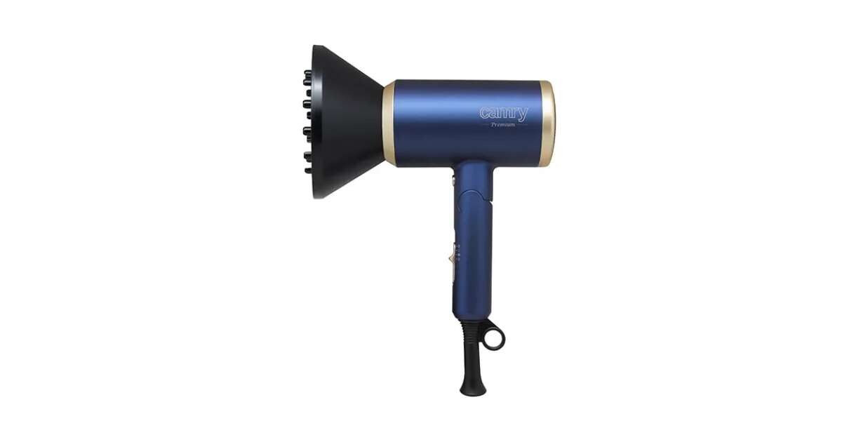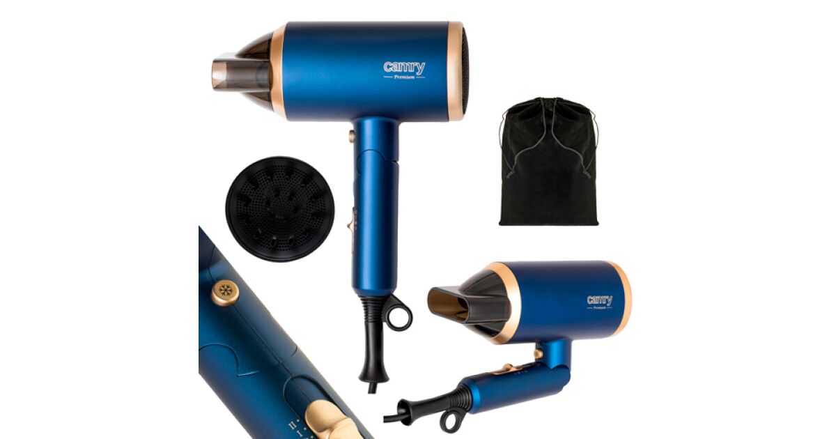 Сешоар със сгъваема дръжка Camry CR 2268, 1800W, йонизация, 2 температурни настройки, 2 степени на скорост, концентратор, дифузер, син/златист покупка: