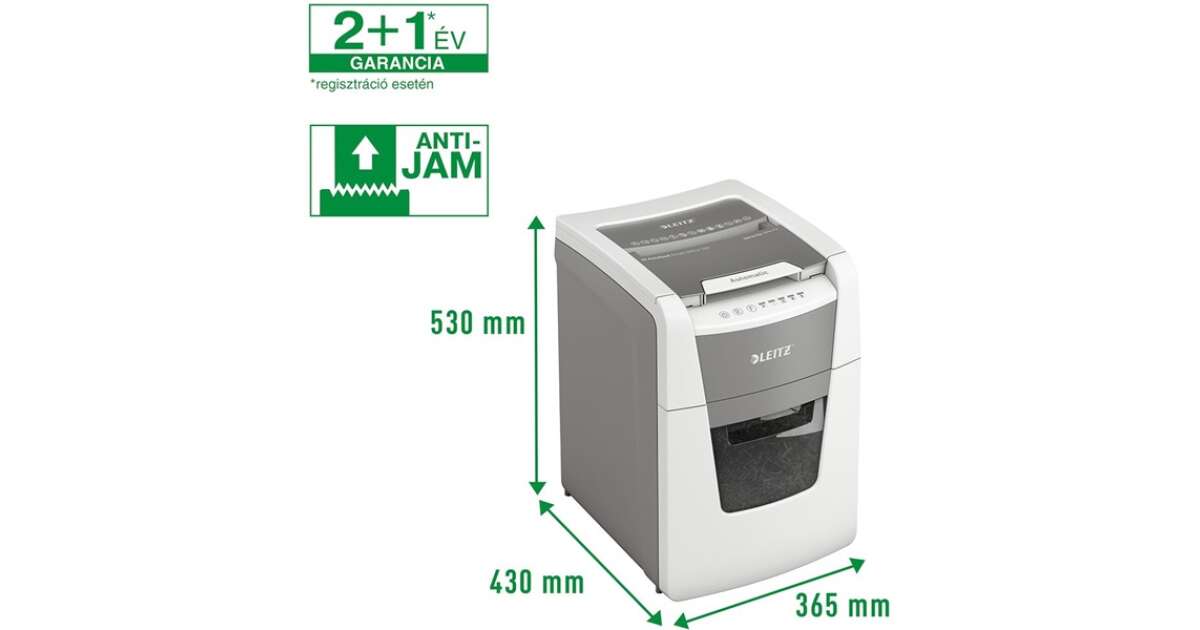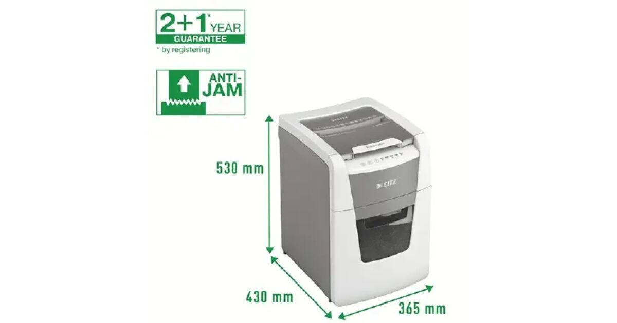 Този напълно автоматичен унищожител на документи LEITZ е перфектен избор за домашна или малка офис употреба. Благодарение на големия капацитет на подаващото устройство и 34-литровия контейнер за отпадъци, можете да унищожите до 100 листа A4 наведнъж. Конфети нарязването със степен на сигурност DIN P4 гарантира защитата на данните.