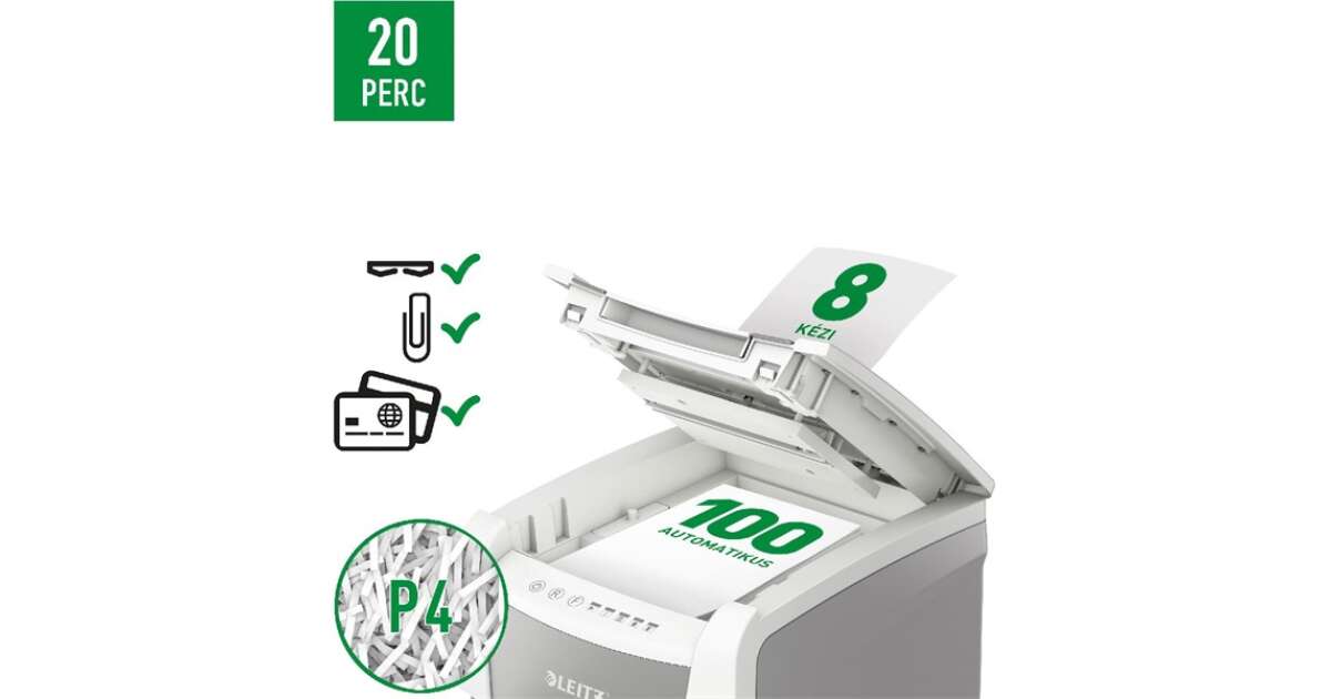 С унищожителя на документи LEITZ IQ AutoFeed SmallOffice 100 P4 Pro гарантирано ще запазите документите си в безопасност, като същевременно спестявате време и енергия.