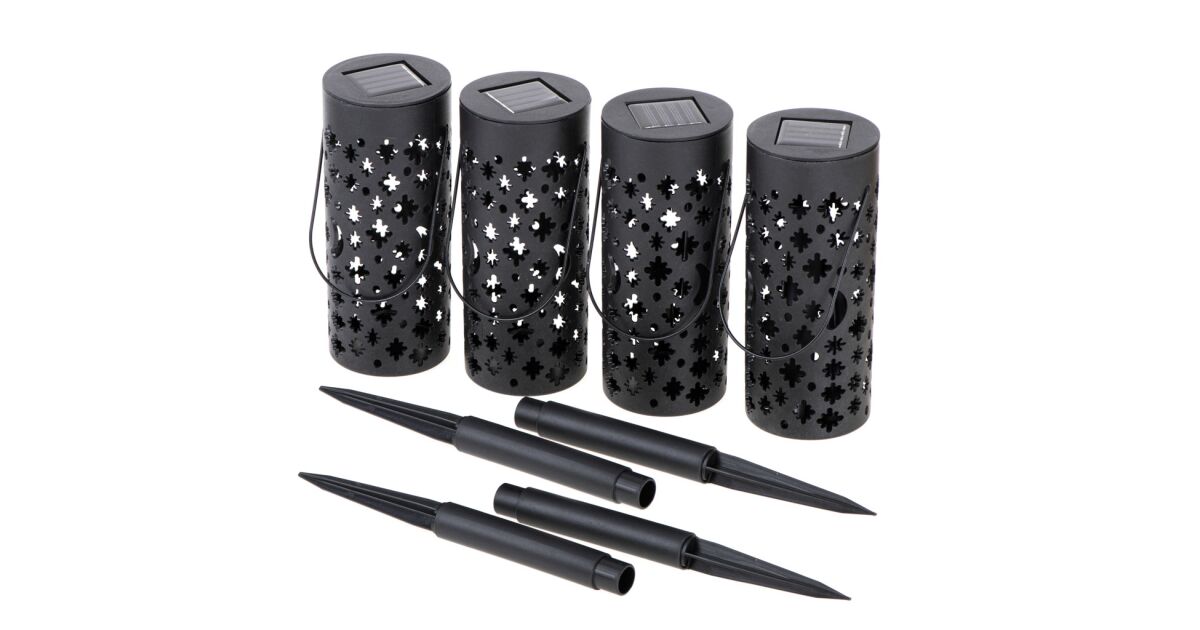 Комплект 4 соларни градински лампи с крачета и закачалки тип "Фенер" с LED