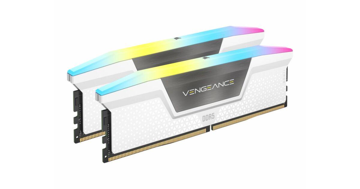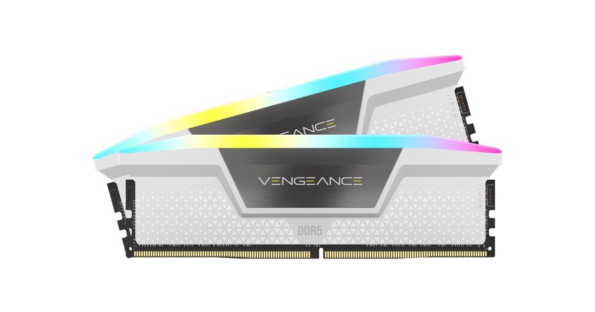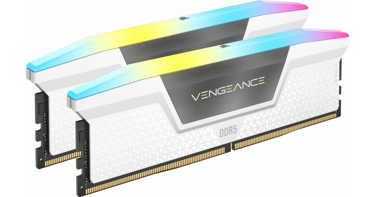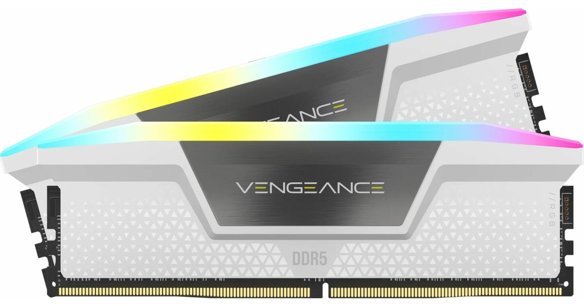 Оперативна памет CORSAIR DDR5 6000MHz 32GB (2x16GB) XMP VENGEANCE RGB RAM, Бял