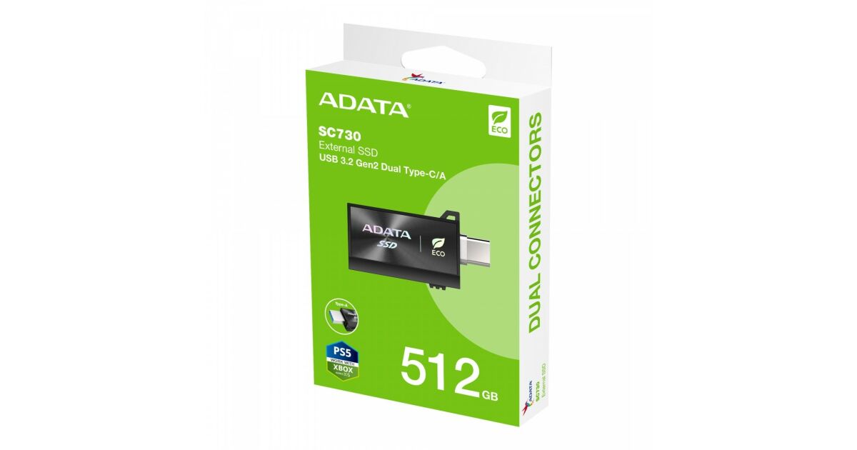 Adata ssd външен usb 3.2 512gb sc730, type-a+type-c, черен SC730-512G-CACTI