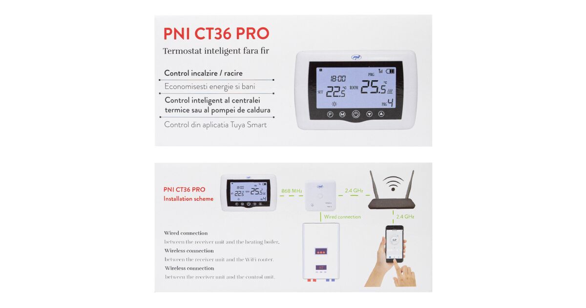 Безжичен смарт термостат PNI CT36 PRO, хистерезис ± 0.1°C WiFi 2.4GHz, управление през TuyaSmart APP Internet, режим зима-лято, за отоплителни системи