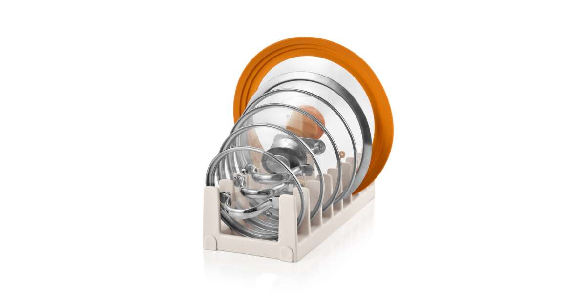 Практично решение за съхранение на капаци за тенджери! Този спестяващ място органайзер позволява подредено съхранение на 8 капака за тенджери. Органайзерът за капаци за тенджери Tescoma FlexiSPACE е перфектен за капаци Tescoma, но е подходящ и за други конвенционални капаци с диаметър между 14 и 32 cm.