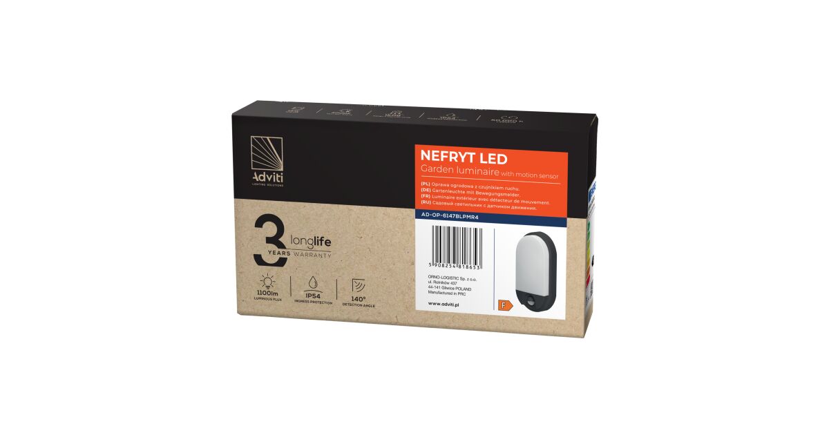 Градински аплик ORNO, NEFRYT, OR-OP-6147BLPMR4, 15 W, SMD LED, Сензор за движение и здрач, Засичане на 140°, 1100lm, IP54, 4000K, Черен/Бял покупка: