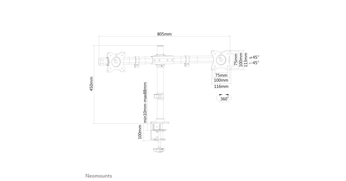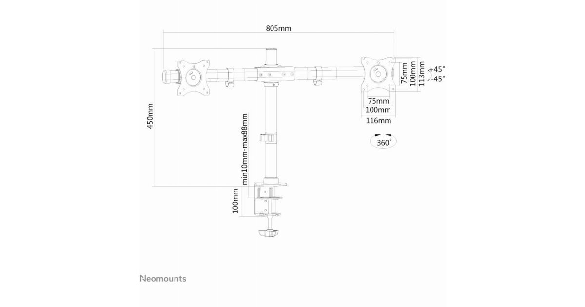 Тази настолна стойка за монитор Neomounts FPMA-DCB100DBLACK е идеалното решение, ако искате да разположите удобно и ергономично два монитора на бюрото си. Стойката позволява регулиране на височината и наклона на екраните, осигурявайки оптимална позиция на гледане за намаляване на умората.