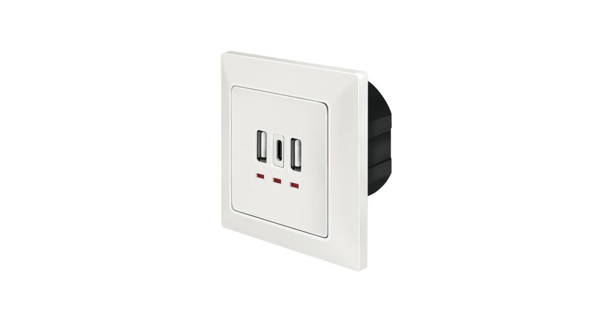 Контакт Logilink PA0254, 2 x USB-A 5V/2.4A, 1 x USB-C 5V/3A, вграден, LED индикатори, Бял описание на...
