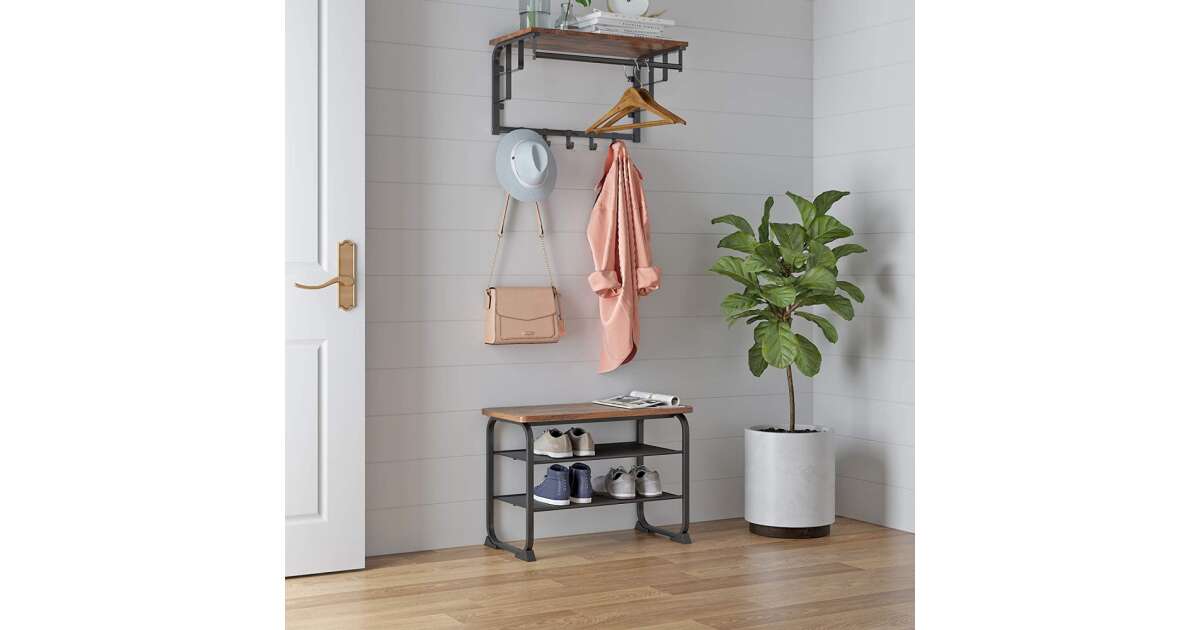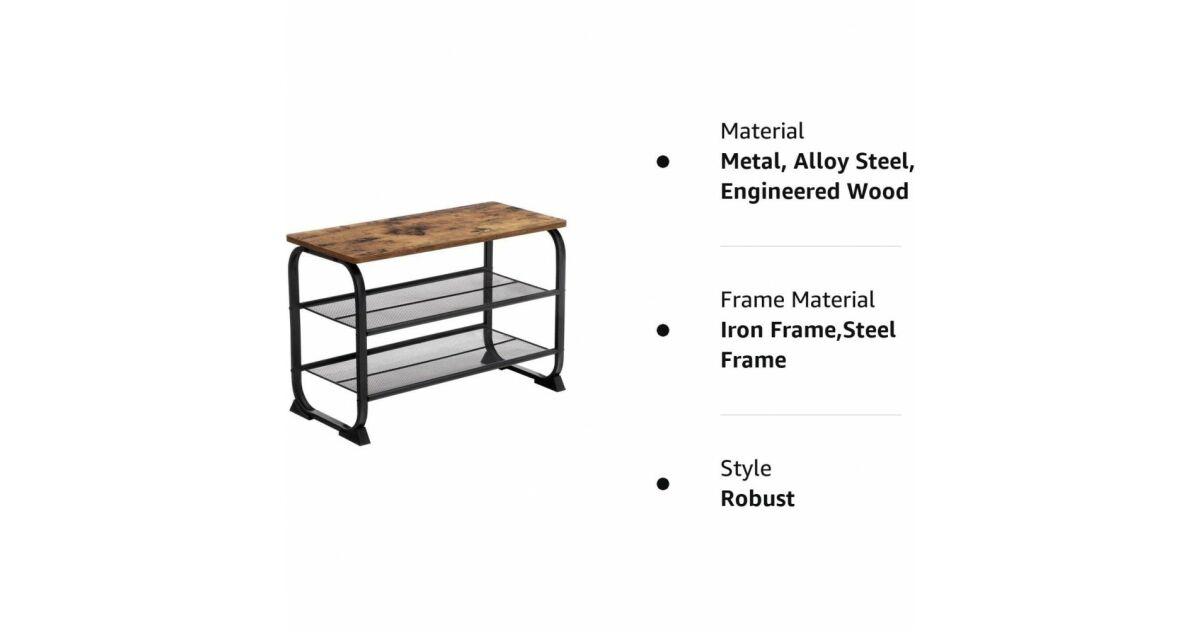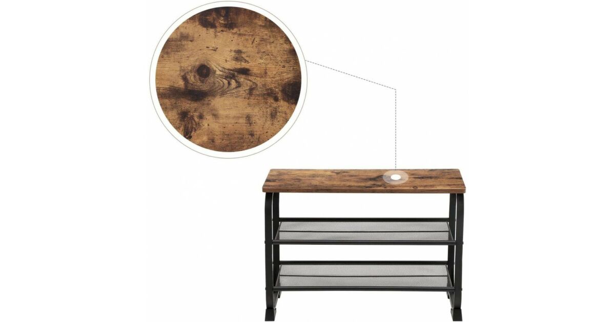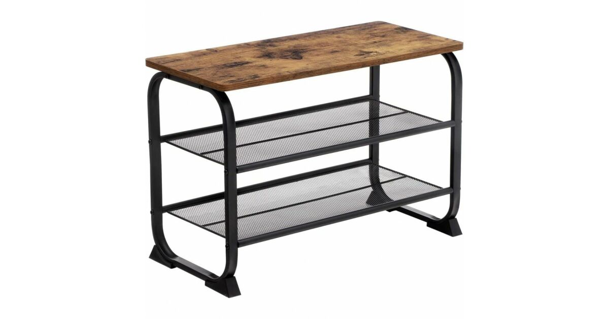Тази стилна и практична пейка за обувки е идеалното решение за съхранение на обувки и може да служи като удобно място за сядане във вашия вход. Изработена е от рустикално кафяво ПДЧ и черна метална рамка за елегантен външен вид.