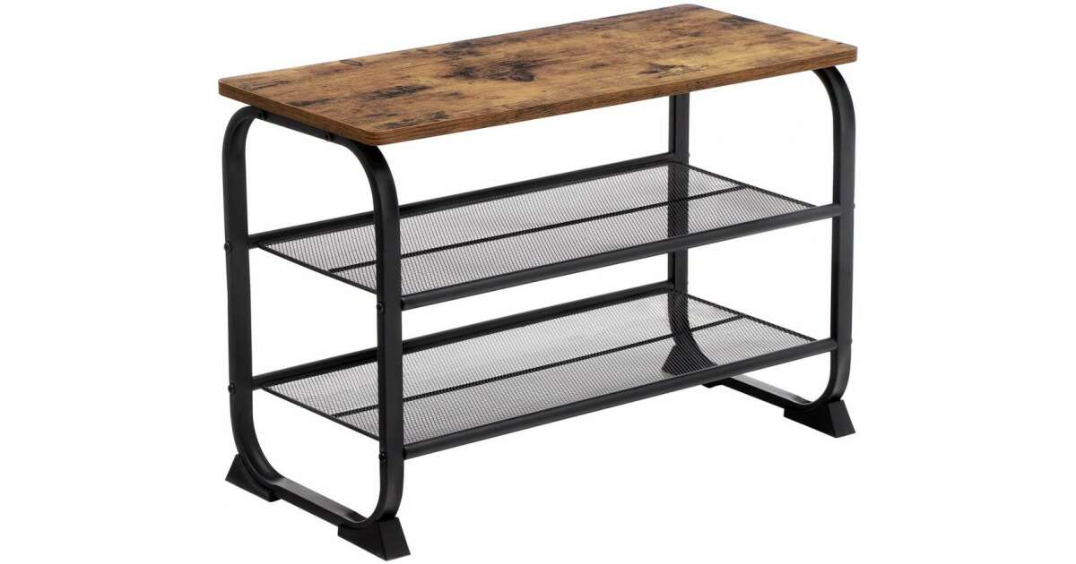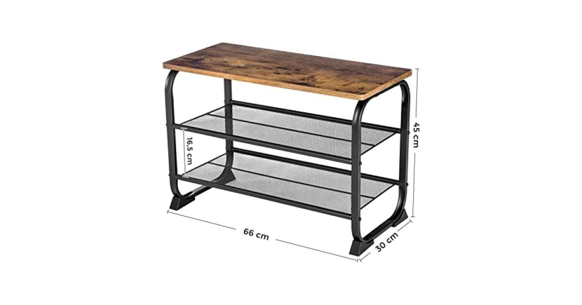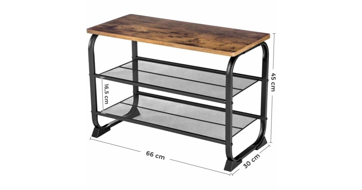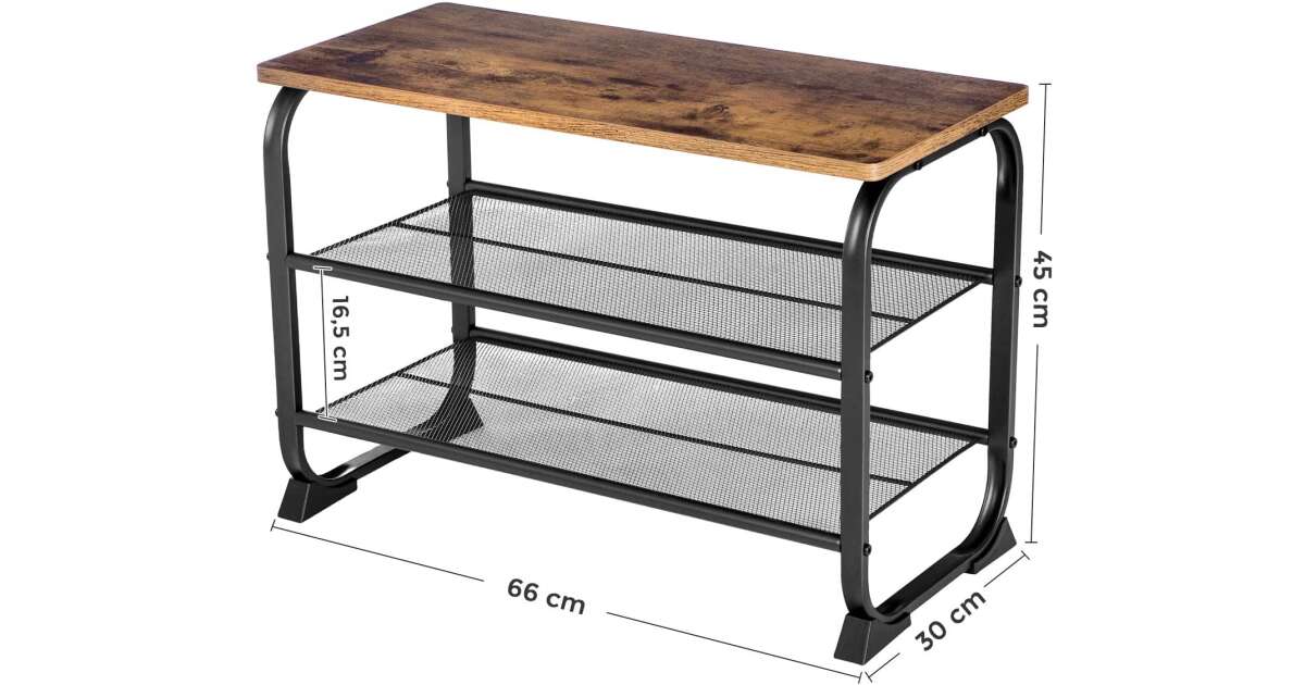 VASAGLE Рустикална пейка за обувки: Органайзер за обувки с 2 мрежести рафта 66 x 45 x 30 cm