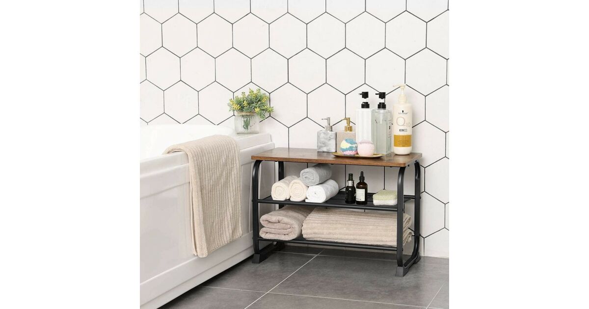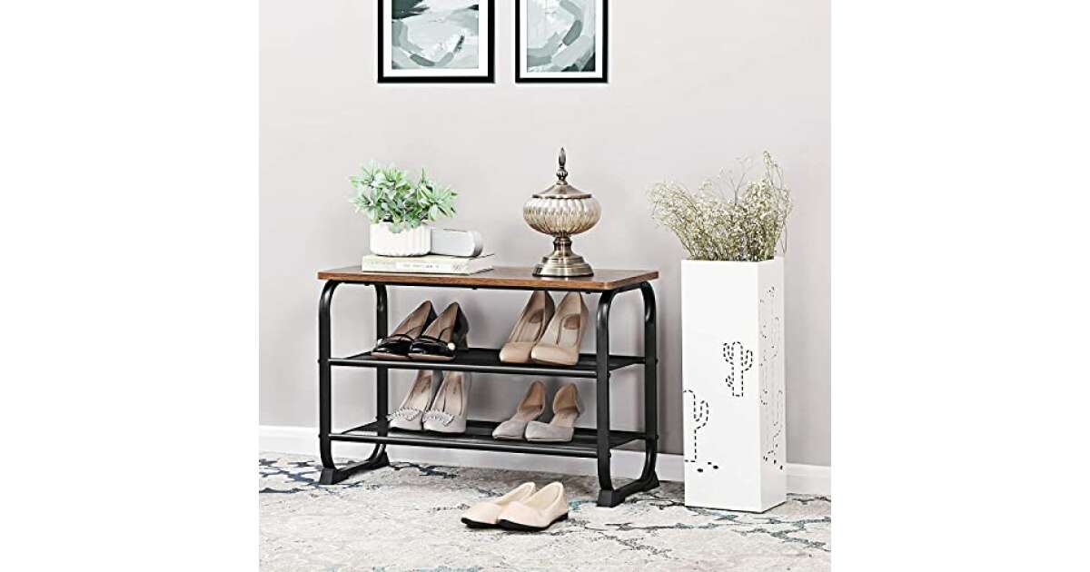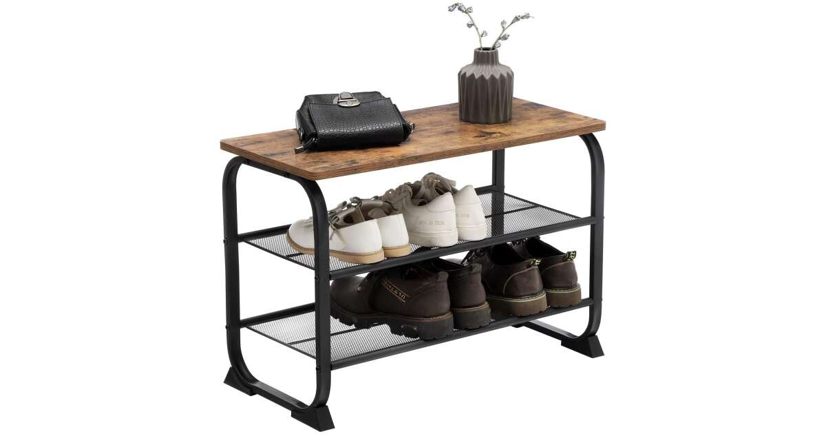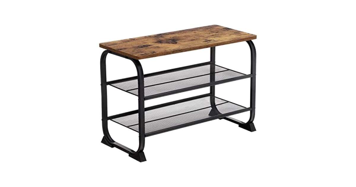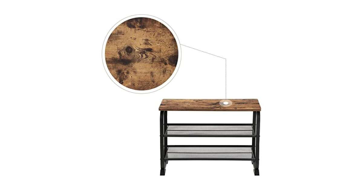 VASAGLE Рустикална пейка за обувки: Органайзер за обувки с 2 мрежести рафта 66 x 45 x 30 cm