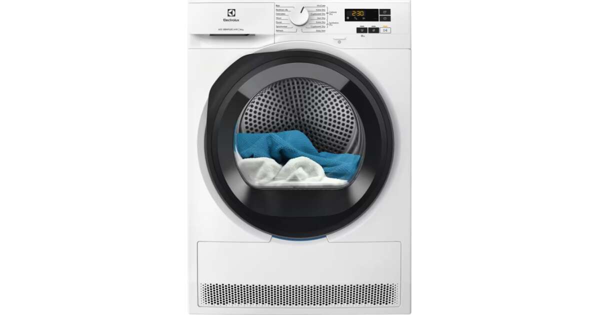 Тази 8-килограмова сушилня с термопомпа Electrolux ще революционизира сушенето на дрехи! Благодарение на технологията SensiCare всяка дреха ще бъде перфектно изсушена, без да се повреди. Кажете сбогом на прекомерното изсушаване и намачкването! ✨