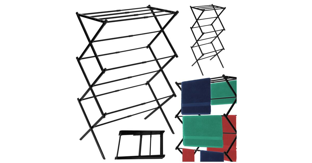 Черен стелаж за сушене на дрехи Springos с регулируема ширина, 7,5 м/15 кг