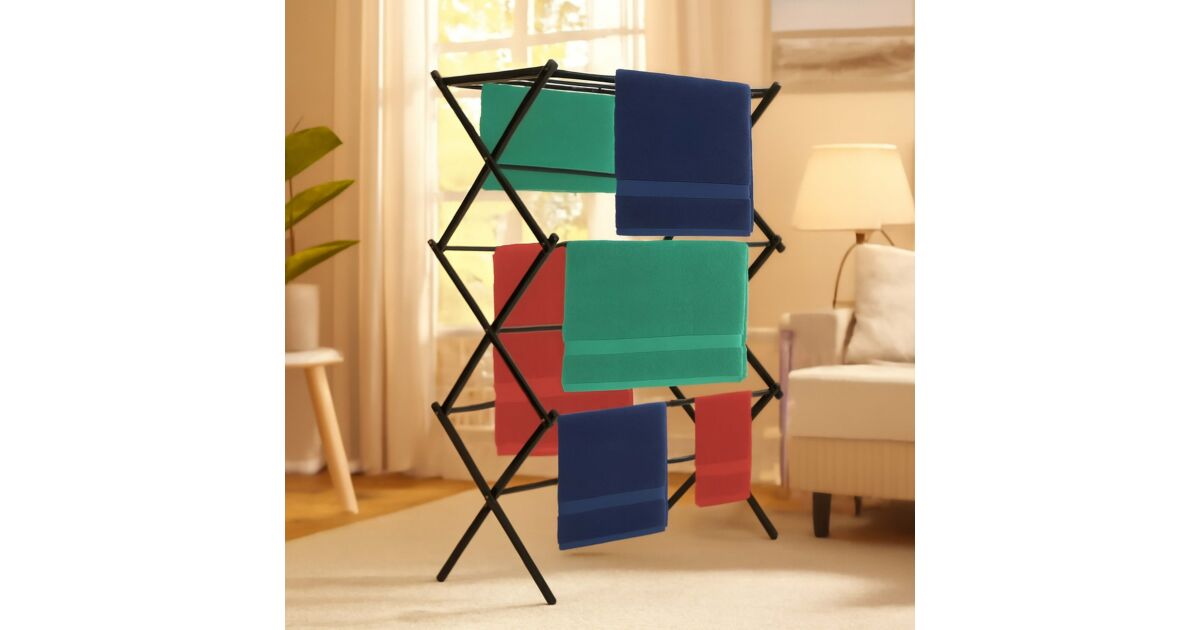 Черната сушилня за дрехи Springos е идеалното решение за малки апартаменти и балкони, където всеки квадратен сантиметър е от значение. Регулируемата му широчина от 36-69 см позволява лесно да се адаптира към наличното пространство, а повърхността за сушене с дължина 7,5 м може да побере пълен товар дрехи от пералнята.Масивната му стоманена рамка с прахово покритие гарантира товароносимост от 15 кг, а пластмасовите защитни капачки предпазват пода от надраскване. Когато е сгънат, той е с размери само 51,5 × 43 × 9 см, така че може бързо да се прибере до шкаф или зад врата, без да е необходим монтаж.Площ за сушене: 7,5 м, 11 пръчки, Ø 1,2 смКапацитет на натоварване: 15 кгДостъпна ширина: 36-69 смРазмери (ВхШхД): 104 × 36-69 × 36,5 смСгънат размер: 51,5 × 43 × 9 смМатериал: прахово боядисана стомана + пластмасаРазстояние между пръчките: 9,5 см за добър въздушен потокГотов за употреба - не се изисква сглобяване