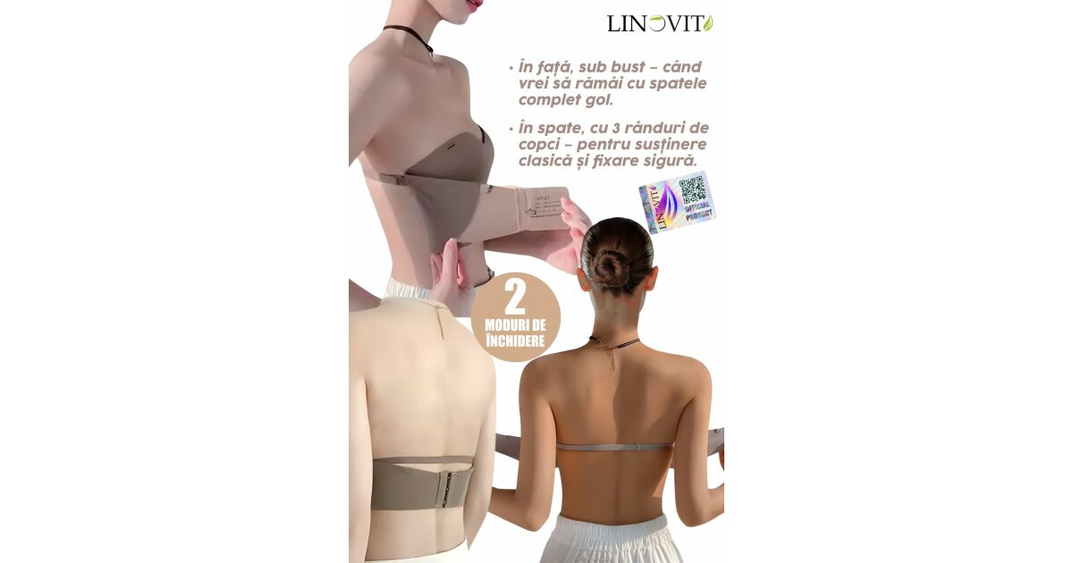 - Тънка, дискретна лента на гърба: Може да се закрепи като нормални презрамки със специални ушички, почти невидима.