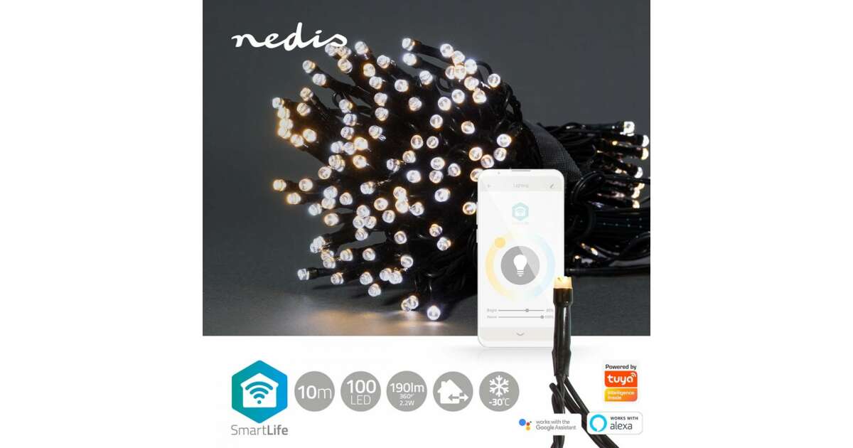 Украсете дома си с този 10-метров смарт LED гирлянд със 100 LED светлини, който създава уютна атмосфера с топла и студена бяла светлина. Благодарение на вградения Wi-Fi, можете лесно да го управлявате от вашия смартфон с безплатното приложение Nedis SmartLife.