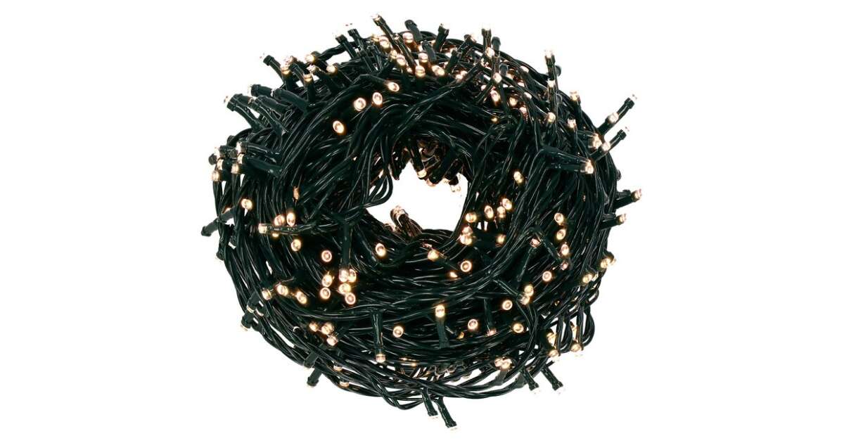 Гирляндът е изработен от висококачествени, водоустойчиви светодиоди и устойчиви на разкъсване медни проводници, което осигурява дълъг живот. Тъмният зелен, 1,5 мм дебел изолационен слой предпазва проводниците от повреди.