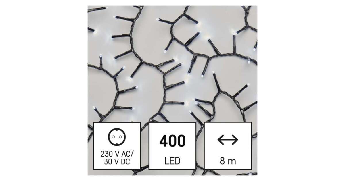 Пригответе се за коледния сезон с този красив 8-метров LED гирлянд! Студено бялата му светлина ще внесе топлина и празнично настроение в дома ви, независимо дали го използвате на закрито или на открито. 400 LED крушки се грижат за блестящите светлини, които са разположени на разстояние 2 см една от друга.