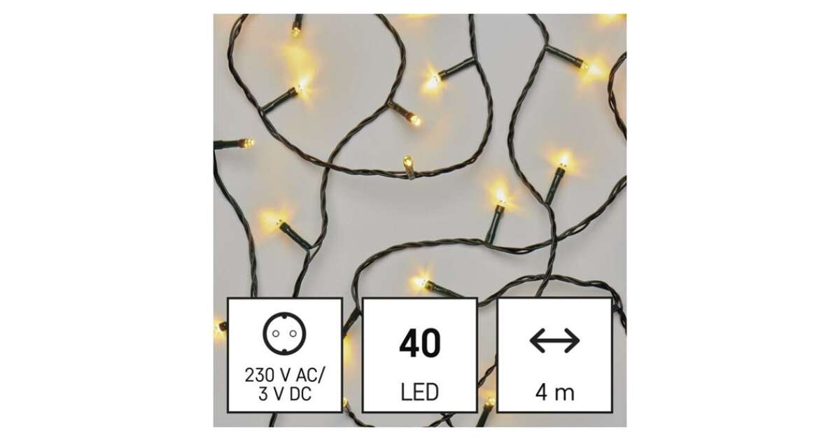 LED коледна светлинна верига, 4 м, за вътрешна и външна употреба, топло бяло, таймер