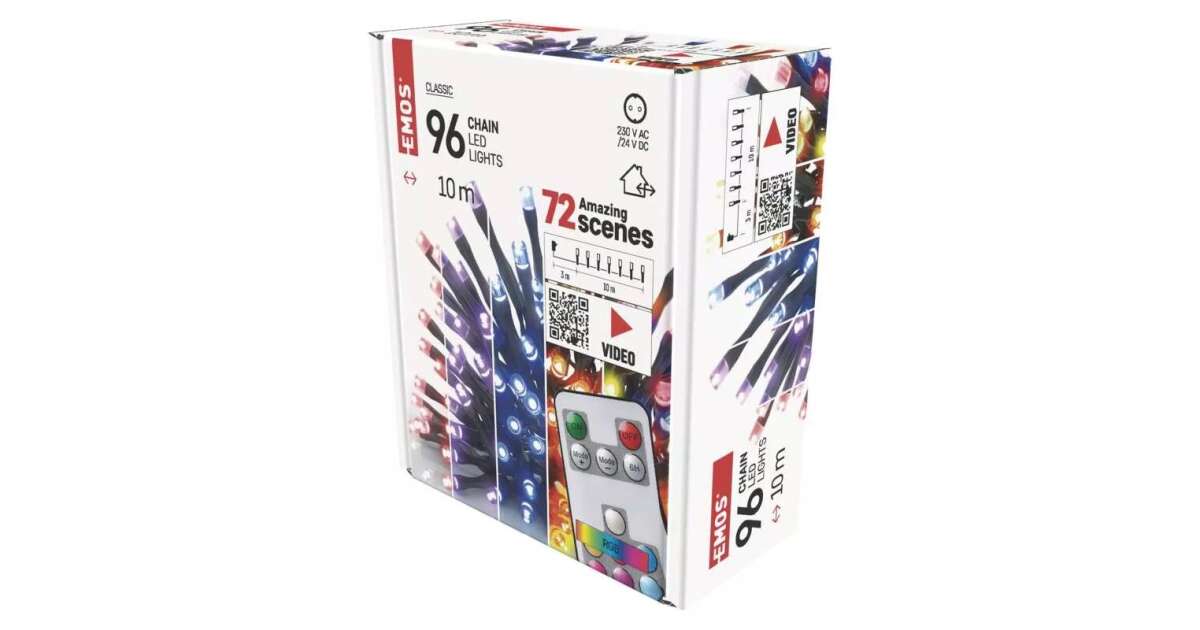 Омагьосайте дома или градината си с този 10-метров RGB LED коледен гирлянд! Благодарение на дистанционното управление можете да избирате от 72 различни светлинни ефекта, за да създадете перфектната атмосфера за празниците. Може да се използва както на закрито, така и на открито (IP44 защита).