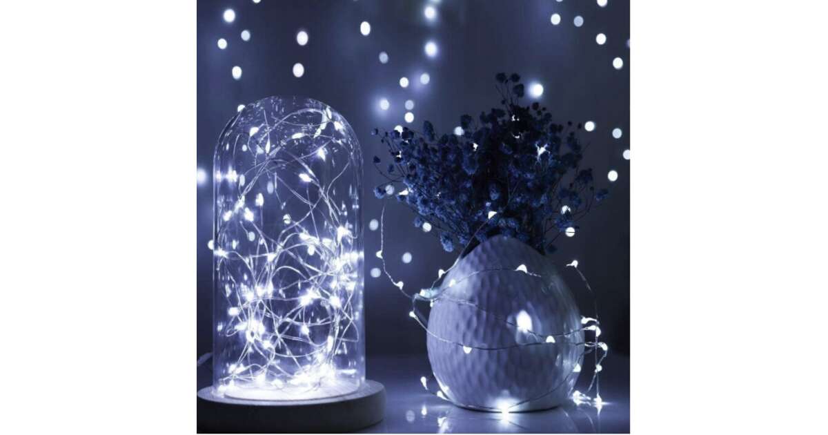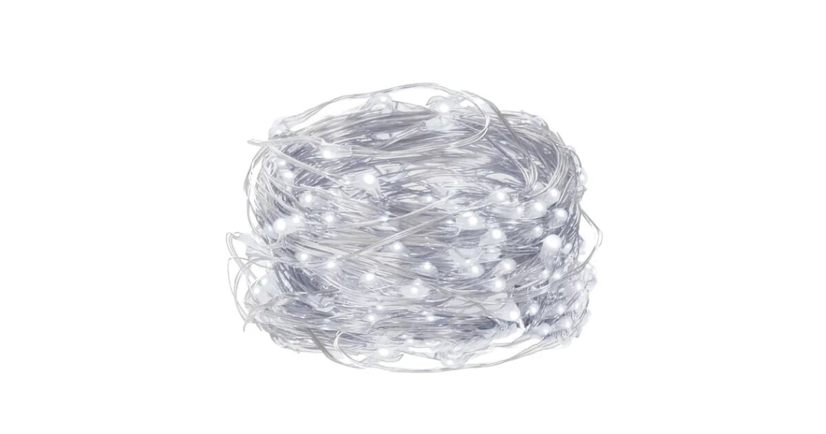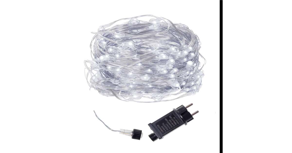 Springos студена бяла 8-функционална, кабелна LED светлинна верига с 100 крушки 13м
