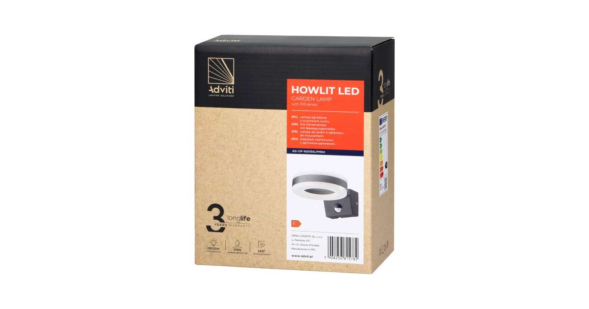 Градински аплик ADVITI Howlit AD-OP-6205GLPMR4, Сензор за движение и здрач, 20W, SMD LED, 1800 лумена, IP65, 4000K, Детекция на 140°, Сив описание на...