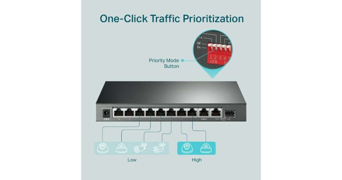 - Priority Mode: Приоритизиране на трафика с едно натискане на бутон (1-2 портове)