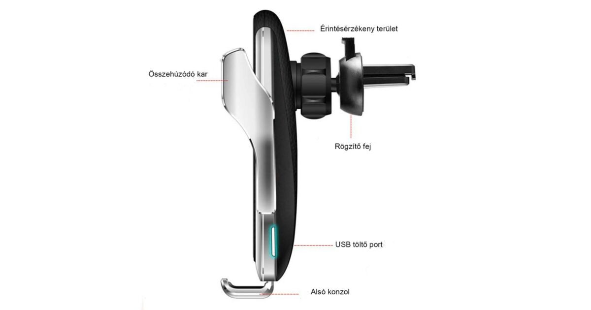 Тази елегантна сребриста стойка за телефон за кола и безжично зарядно е идеалният избор за съвременните шофьори. Насладете се на комфорта на шофиране, без да се притеснявате за изтощена батерия! Интелигентната технология се грижи за бързо и безопасно безжично зареждане, като същевременно държи телефона ви стабилен.