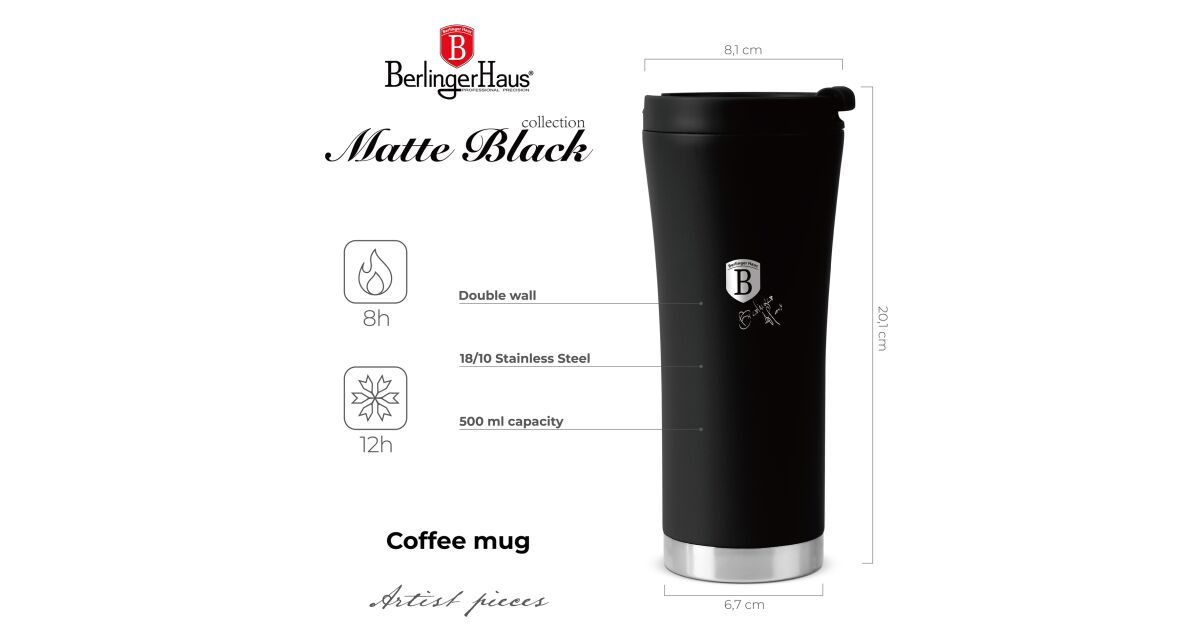 Berlinger Haus BH-8751 Колекция Матово черно Термос за кафе, 0,5 л - Матово черно